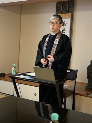 12月26日(月)午後3時より日高別院本堂にて、僧侶研修会が開催されました。 今回は、伊那組照光寺の住職で本願寺派特別法務員を勤められている藤岡大祐師に、伝統奉告法要のお勤めの特徴などを解説頂きました。 続いて、4時過ぎより組内会が開催され、伝統奉告法要団参などの打ち合わせが行われました。 |