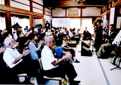 住職湯川暢夫師の急逝から4年余、御門徒の思いが実り本堂・山門改修、庫裡新築という大事業が完遂いたしました。当日は常徳寺有縁の法中が出勤されるなか、厳かな法要が行われ、アトラクションでは「津軽三味線 龍翔天舞」の演奏に大興奮いたしました。