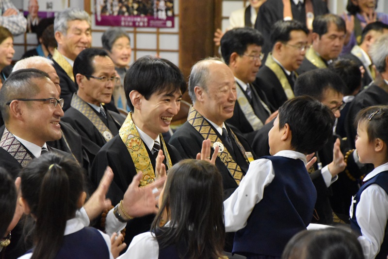 今年も日高別院本堂にて、12月5日(金)から7日(日)にかけて、午後1時半より報恩講法要が厳修されました。5日(金)は御坊幼稚園の園児たちのおつとめでした。