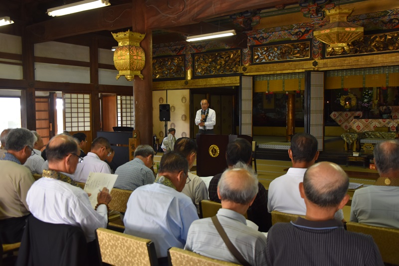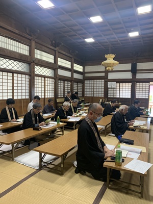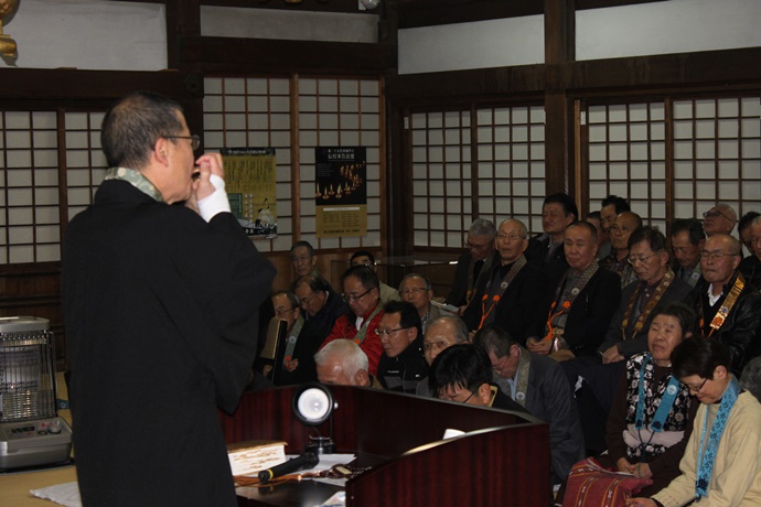 12月23日に日高別院の書院にて「御坊組組内会」が開催され、多くの御坊組寺院の僧侶、寺族が出席しました。 升巴信隆和歌山教区教務所長より、今後の日高別院の法務や運営についての説明がありました。 また、升巴教務所長による「み教えと差別の現実」についての研修講座も開催され、「隋順仏語」「順彼仏願」の視点で物事をとらえる重要性を学びました。 |