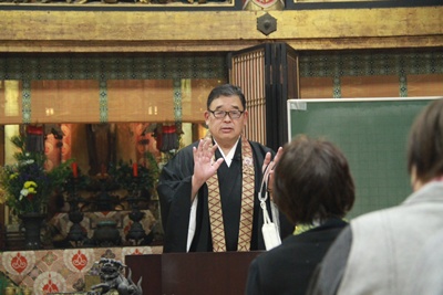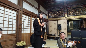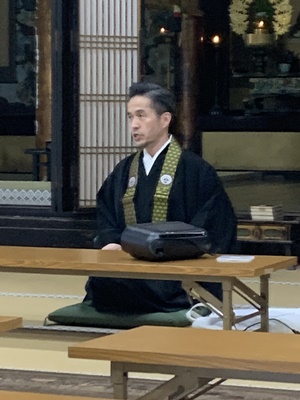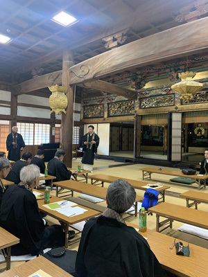 12月26日(月)午後3時より日高別院本堂にて、僧侶研修会が開催されました。 今回は、伊那組照光寺の住職で本願寺派特別法務員を勤められている藤岡大祐師に、伝統奉告法要のお勤めの特徴などを解説頂きました。 続いて、4時過ぎより組内会が開催され、伝統奉告法要団参などの打ち合わせが行われました。 |