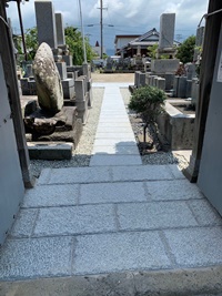| 御坊組安養寺本堂前の参道の石畳が、お盆を前に改修されました。 経年劣化したコンクリート製のものを、お墓の建立や境内の庭木剪定などの車の乗り入れができるように地下に鉄筋を入れ、御影石造りの堅牢な参道となっています。 向拝の段差に合わせるようになだらかに上っている工夫もされています。 ご門徒の皆さまをはじめお墓参りにいらした縁者の方からの自由懇志も呼びかけられ、7月末から2週間余りで工事は完成。 懇志を進納することで気軽に護寺に参加ができ、お寺とのご縁を深められる良い機会となられました。 |