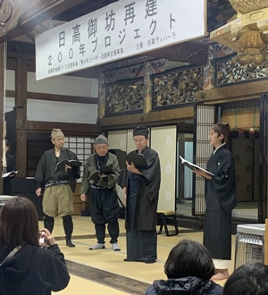 3月16日に日高別院にて、本堂再建200年を記念したイベント「日高御坊再建200年プロジェクト」が開催され、「御坊」の名の由来となった日高別院と寺内町の歴史を学ぶご縁をいただきました。 寺内町ツアーや、御堂会館での抹茶接待など、小雨模様の中でも多くの方でにぎわっていました。 日高別院本堂では、御坊楽所和雅楽(ごぼうがくそ・わがらく)による雅楽演奏、劇団RAKUYU有志による「湯川一族と日高別院」の寸劇、日高別院副輪番、花田和樹師によるご法話を賜り、日高別院の歴史と地域との深い絆を感じる一日となりました。 |