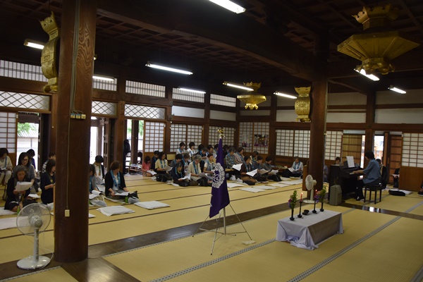 来る来月12月8日に日高別院で行われる、報恩講ご満座法要を兼ねた「親鸞聖人御誕生850年立教開宗800年慶讃法要」に向けて御坊組僧侶に対する習礼が開催されました。 このたびの法要で「新制 御本典作法」をお勤めするにあたり、ご教授いただいたのは和歌山教区勤式指導員の西永月潭師です。 先月10月18日に続いて第2回目の習礼ですが、慣れない節回しもさずが皆さま!すぐに習得なさっていらっしゃいました。 法要当日はライブ演奏や雅楽演奏の記念行事もあり賑やから法要となります。 お参りを希望されるご門徒の皆さまは、是非ご自坊にお問い合わせの上ご参拝くださいませ。 |