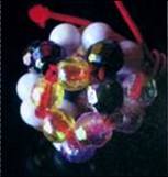 ☆古いお念珠のリサイクル 「匂ひ珠」 使わなくなったお念珠の珠を使い、球形につなぎ合わせた中に匂い袋を入れる。 |