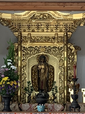 特に安政年間、智教は寺子屋を盛大にしたことも記録されている。尚、昭和三十六年九月十六日、第二室戸台風で本堂が全壊した。その後、仮本堂を建て現在に至っている。 ありがたいことに、本堂は倒壊したが不思議なことに阿弥陀様は無傷であった。 |