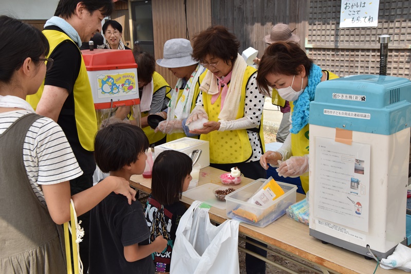 今年のかき氷は、かき氷の上にアイスをのせ、そのアイスにチョコで目と鼻を作り、最後にクラッカーで耳をつけてみました。なんとクマさんかき氷の出来上がりです。みんな大喜び。やっぱり、夏はかき氷が一番ですね。 ヨーヨーつりでは、たくさんつり上げたお友達がいました。 そしてアーケードゲームでは、クリアしたお友達に特別賞がもらえました。特別賞は、くじを引いてスーパーボール、消しゴム、鈴などがもらえるということで、みんな大興奮でしたね。 |