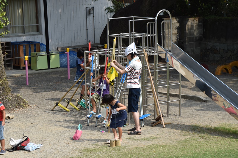 竹馬はスタッフの方が支えてくれたので、安心して乗ることができたね。 |