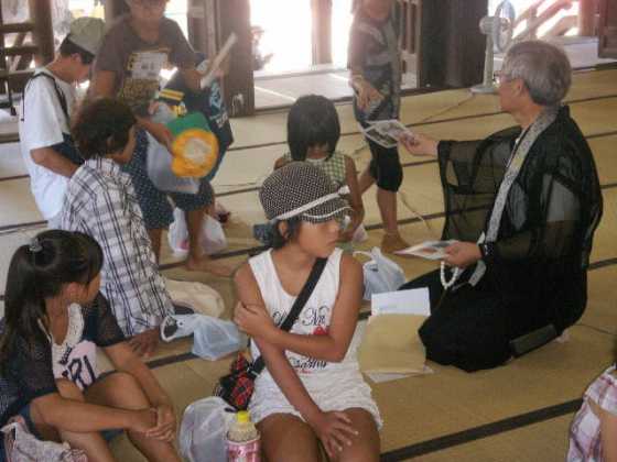 さあ、ここからはチームに分かれて行動です。ここ、「あみださまの家」ステージでは、先ほどミニライブをしてもらった方と一緒に、曲あてゲーム『雅楽でイントロドン』をおこないました。 みんなが知ってる曲を雅楽で演奏してもらうので何か不思議な感じでした。 写真集(2/4)はこちらから |