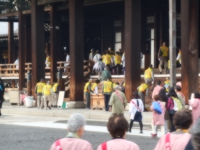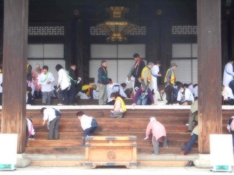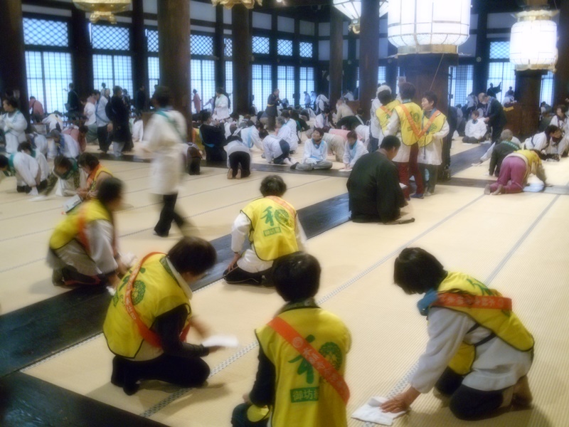 奉仕団ごとに、御影堂の階段にならんで、ご門主様とご一緒に記念撮影です。昨年6月にお代変わりがあったので、新しいご門主様との記念撮影です。 ご門主様から、奉仕活動に対するお礼のお言葉をいただきました。こんなに近くでお門主様にお会いできるのも奉仕団に参加できたからです。 記念写真のあとは御影堂の中でご面接です。ご面接とは、ご門主様からご法話をいただくことです。 ※この記念撮影とご面接の間は、写真撮影禁止となっているので写真ではご紹介できません。 |