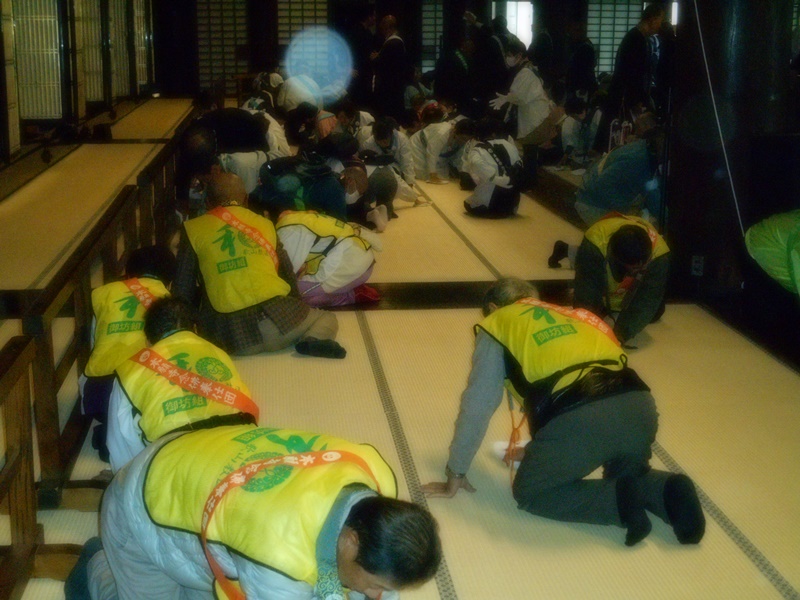 | 12時30分 | 集合時間が近づいてくると、各地から続々と奉仕団の方が集まって来られました。 |