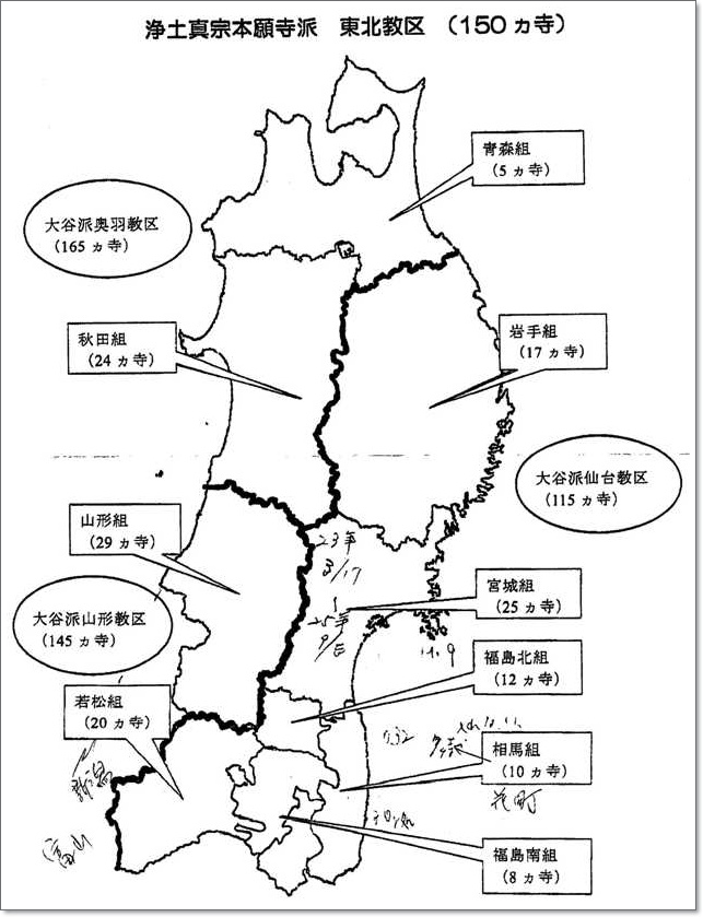 ■1日目 仙台別院にて仙台空港から昼食後まっすぐに仙台別院を訪ねました。そこで仏教婦人会の会長さんをされている北村さんから震災後のボランティア活動のお話をお聞きしました。 2011年6月より名取市の仮設住宅をはじめとして9ヶ所の仮設住宅において御茶会をおこなってこられたそうです。現在は、仮設住宅での御茶会だけではなく、借り上げ住宅の方や自主的に避難された方などを対象として仙台別院にてサロン活動を行ったり、公民館などを利用してコミュニティづくりのお手伝いをされているそうです。 また、福島県相馬組の仏教婦人会会員の方が津波で妹さんを亡くされたのですが、水素爆発した原発の放射能の影響で遺体も見つけられないと涙ながらに話して下さいました。原発の恐ろしさを身近に感じ、放射能測定器をネットでロシアから購入して、手に持ったりしているというお話や、汚染処理をしたゴミが自宅の庭に積んだままになっている事など、本当に現地に来ないと解らないことが沢山あると感じた一日でした。 |