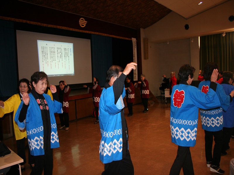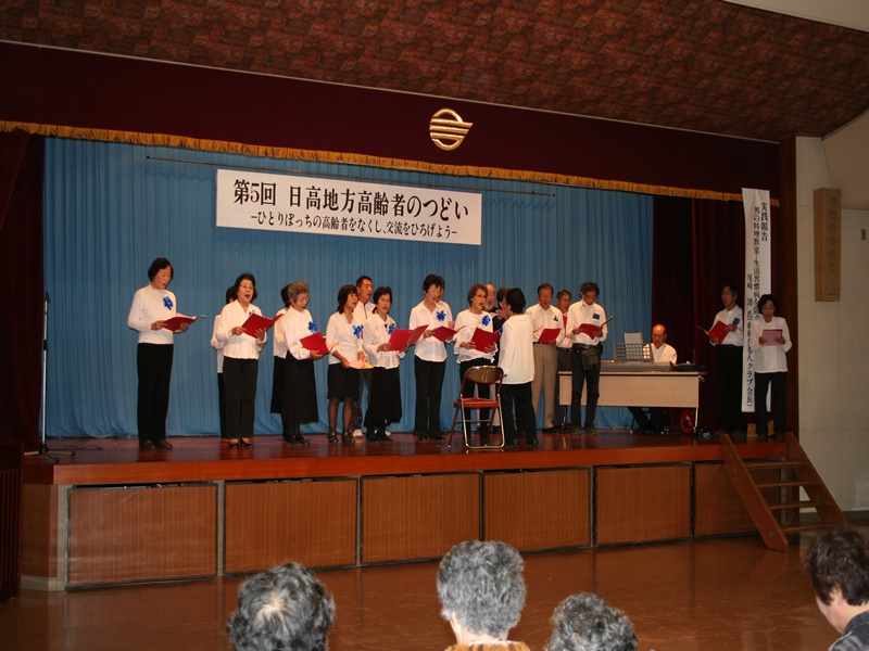■高齢者の集い 最後はみんなで歌いましょうと、舟木一夫さんの「高校三年生」の替え歌「人生これから」を大合唱して終了。この歌、結構面白いですよ。下に歌詞を挙げておきます。どうぞ練習してみて下さい。 |