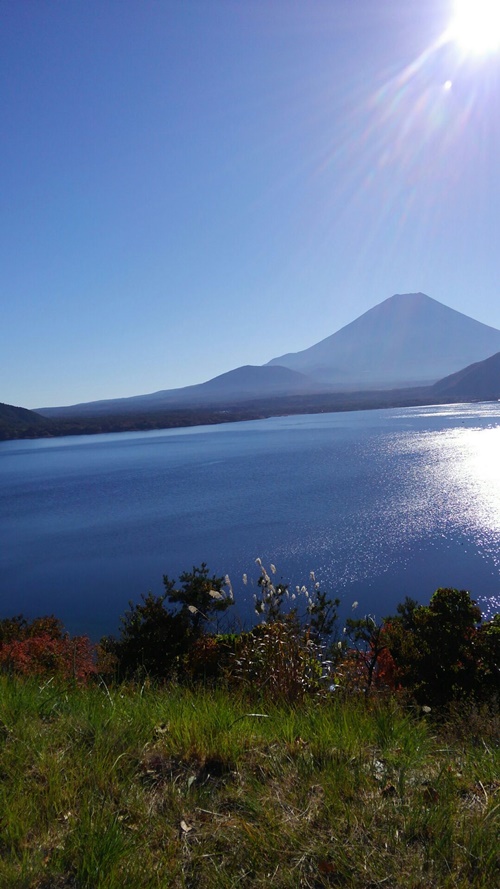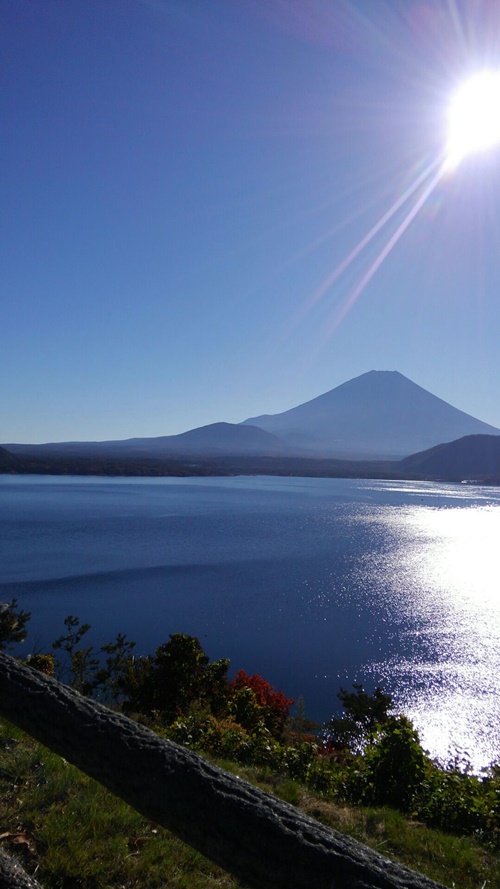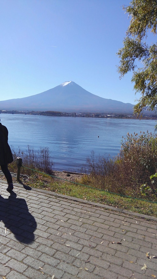 ■本栖湖〜河口湖〜白糸の滝(2日目) 2日目はホテルを8時半に出発して、本日の最初の目的地の河口湖に向かいました。河口湖へは甲州いろは坂を通って本栖湖を抜けていきますが、当初、本栖湖は車中で眺めるだけの予定でしたが、あまりの晴天で富士山が本栖湖にくっきりと写っていたので、予定を急遽変更して30分の撮影タイムをとっていただきました。千円札の裏にもなった富士山の姿が目の前に浮かび、その雄大さに圧倒されそうになりました。河口湖へは西湖から精進湖をちらっと見て、ガイドさんの説明を聞きながら河口湖へ到着しました。