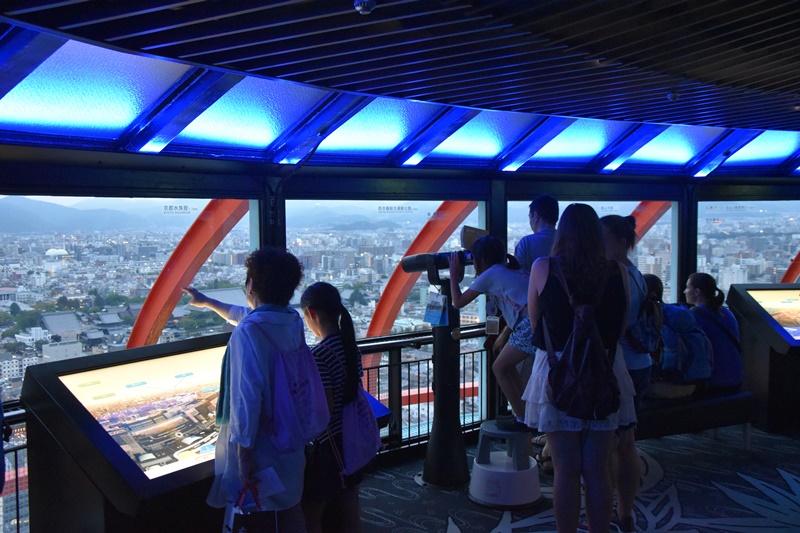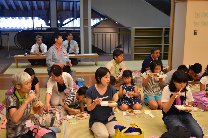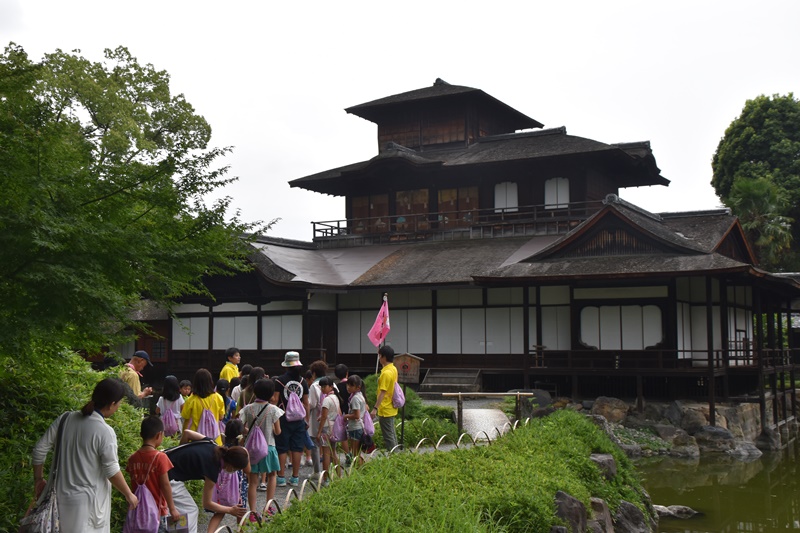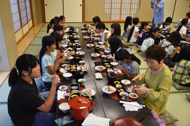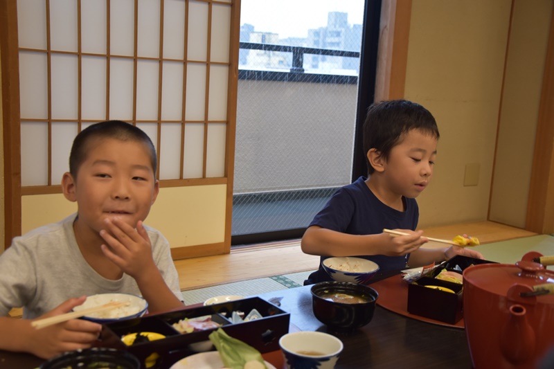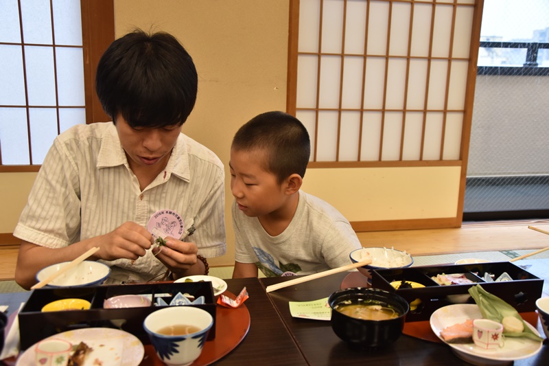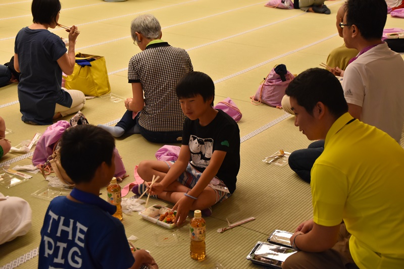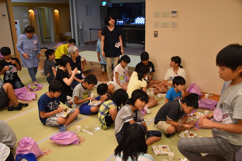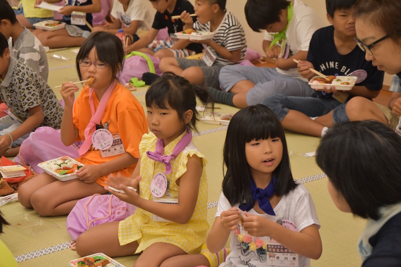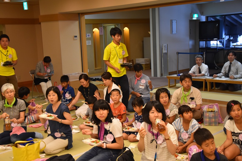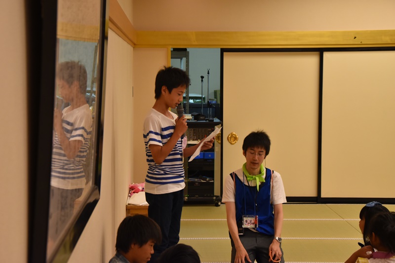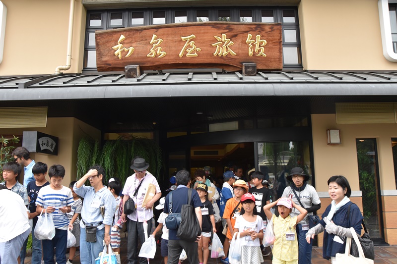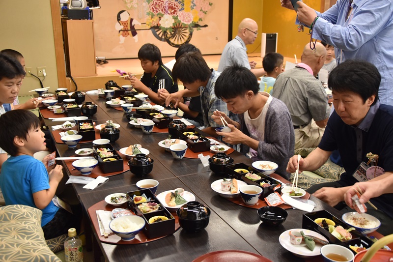 ■第1日目(7月25日) 午前7時15分御坊の島会館前を出発し、富安、日高中学前、そして有田南、有田北を回り、たくさんの友だちを乗せて、西本願寺に向かいました。バスの中では、みんなでクイズをしたり、バスの到着時間当てゲームをしたりして、あっという間に京都に到着しました。 京都に到着して、宿で荷物を下ろして安穏殿に行くと、2日間、私たちのお世話をしてくださるお兄さんとお姉さんが待っていてくれました。今回のしおりや筆記用具などが入ったリュックをもらい、一緒にお弁当をいただきました。 午後12時45分になると本日の日程説明を受けたり、各奉仕団の自己紹介をしたりしました。その後、御影堂に移動して午後2時からの開会式に参加しました。開会式の後は、御影堂の畳と廊下の雑巾がけを行いました。掃除後は、龍の子探検隊として、境内や書院、飛雲閣をまわり、各所で出題されるクイズを楽しみました。普段は入れない処に入れるのも児童念仏奉仕団に参加した特権です。 その後、安隠殿に戻り、ご法話を聞き、1日目の予定が終了しました。宿に戻って豪華な夕食を頂きました。夕食後は、京都タワーに登り、お土産を買ったりして、京都を満喫しました。 |