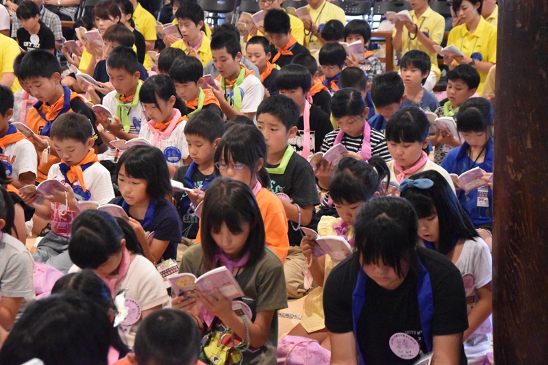 ■お子さまをお持ちの全てのお父さん、お母さんへ 児童念仏奉仕団とは西本願寺が行っているサマースクールの様なものです。お寺が行っているため阿弥陀さまに向かい礼拝をする機会は多いですが、他のお子さんと競い合ったり、課題的なものは一切ありません。もちろん無理強いすることもありません。 私も、毎年お子さんを引率して児童念仏奉仕団に参加させていただいていますが、お子さんの成長は目をみはるものがあり、毎回驚かされることばかりです。 例えばこんな話があります。ある小学4年生のお子さんは、当初、お子さんひとりで参加させるには心配なためお母さんが付いてこられていました。ところが2年ほど前、お子さん自身がお母さんに、「もう付いてこなくてもいい」と言ったそうで、ひとりで参加されるようになっています。もちろん奉仕団で知り合ったお友達に会えると毎回喜んで参加されています。また、別の小学4先生のお子さんの話ですが、このお子さんは昨年からおばあちゃんと一緒に参加されています。お父さんにお話を聞くと、人見知りで引っ込み思案のタイプだそうでかなり心配されていましたが、このお子さんは昨年、知っているお友だちがいないにもかかわらず、初めて会った集団の中で楽しそうにおしゃべりしながらご飯を食べていました。 この奉仕団にはいくつか決まりがあります。子どもさんは子どもさんだけの部屋で寝ます。付添の親御さんとは別に寝ます。たまに夜泣きをするお子さんもいますが、自然と年長のお子さんが面倒をみたりするようになります。朝5時に起きる際にも年長のお子さんが年下のお子さんを起こしたりしているようです。また、お晨朝では他の参詣者の方と一緒にお勤めを行い、法話や御文章をいただきます。約1時間の長丁場になりますが誰一人として騒いだり、本堂を飛び出したりするお子さんは見たことがありません。 もちろん全てのお子さんにあてはまることではありません。一度切りの参加になったお子さんもおられます。ですが、一度ぐらいは参加してみてはいかがでしょうか。試しに一度参加されて、それから毎年のように参加されているお子さんも大勢おられます。小学1年生の時に参加し、それから小学校を卒業するまで毎年参加していた猛者もいます。参加費用に関しても、今のところ、和歌山教区から補助が出て、御坊組からも補助が出ます。また所属寺院によっては寺院からの補助が出るところもあります。結果、参加費としては無料、もしくは無料に近い額で参加できるようになっています。次回も夏休み開催となり、当ホームページで募集案内を掲載させていただきますので、お子さんの背中を押してみられてはいかがでしょうか。今まで知らなかったお子さんの姿に気づかされるかも知れません。 |