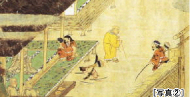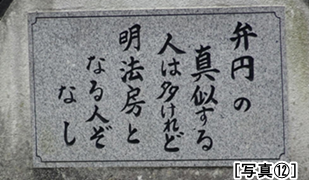 そこで弁円は、持っていた弓矢を折り、刀や杖を捨て、山伏特有の額に付ける頭巾を取り、柿渋染めの山伏の着衣を脱ぎすてたとあります。これ以後、弁円は専修念仏に帰依して、聖人から明法房(みようほうぼう)の僧名を頂いたのです。[写真A]