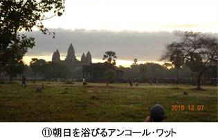 この日は沈みゆく夕日をプレループ遺跡で鑑賞し第一日目を終えたのでした。I (ここは死者を荼毘に付した所とも言われており、夕日には哀惜の色合いが濃く見えたような?)二日目は何と!早朝5時出発でアンコール・ワットの朝日鑑賞からスタートです。J 朝日を待ちに待ちもう少しで拝めるという所でタイムアウト!K次の所へ移動です。