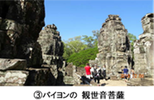 お昼寝もし、汗も収まり今回のメイン、世界三大仏教遺跡(世界三大仏教遺跡とはミャンマーの『バカン遺跡』・カンボジアの『アンコール・ワット』・インドネシアの『ボルブドール遺跡』ですが、残念ながら、『バカン遺跡』は世界遺産には登録されていません。[世界遺産オンラインガイドより])の一つであるアンコール・ワットへ向かいました。水の上に浮かんだ浮遊感たっぷりの特性の橋を渡っての参拝です。迷路のような回廊を案内されながら進んでいきましたが、途中に今なお参拝されている仏様も有り、ここはヒンドゥー教寺院でありながらも仏教寺院の性格を併せ持つ場所となってることがよく分りました。P