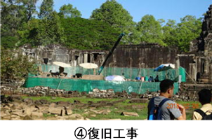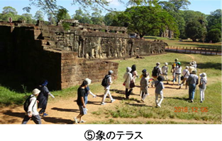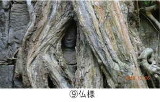 このアンコール・トム遺跡は風化や戦争等々で痛みも激しく日本の支援で復旧工事が行われているとの説明があり、ちょっぴり誇らしくも思ったのでした。C またここには象のテラスDやライ王のテラスEと言われている所もありました。