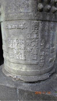 お寺の閉門時間が迫ってきましたので、ここで今回の代替梵鐘の探索は終了。鞍手組にはあと5鐘あるはずですが、また別の機会にします。ここのコンクリート鐘の特徴は、しっかりした「型」があったのでしょうか、同形同大で実に精巧に作られていることです。「字」も力強く戦勝の願いが現れています。製作者名として「直方市 村尾勘市」さんと読み取ることができますが、器用な左官さんがにわかに作ったというより芸術家の作品のようです。 新聞記事(朝日新聞デジタル2015.8.13)によりますと、この直鞍地方の様々な宗派寺院約100ケ寺を訪ね、コンクリート鐘を調査した愛知県護国神社資料編纂室の元杭和則氏は24鐘のコンクリート鐘があること、そしてその製作者はすべて「直方市 村尾勘市」氏であることを明らかにされています。