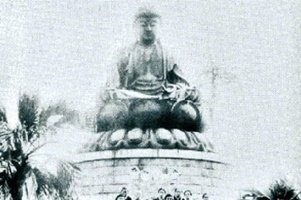 晩秋の日没は早く、この旅の最後の訪問寺、福岡市東区馬出にある稱名寺(時宗)に急ぎました。ここには昭和19年まで「博多大仏」があったところです。当時、奈良、鎌倉に次ぐ大きさの大仏が野外にありました。現在はその台座を残すのみ。私が当日そこに着いたのは日没寸前、台座大きさから往時の像姿が偲ばれます。もし、これが残っていたら、この時間西日を背から浴び、極楽世界を感じさせる風景が境内に広がっていたことでしょう。「金属類回収令」は寺院から仏具の供出を強いましたが、寺院の本尊仏は信仰の対象として例外となりました。しかし、本尊でない仏像に関しては容赦なかったようです。