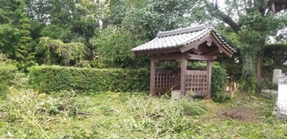 昨年9月始め近畿地方を襲った台風21号、当地にも甚大な被害をもたらしました。幸い三宝寺の被害は軽微で、山門の装飾瓦が一部損壊した程度で済みました。