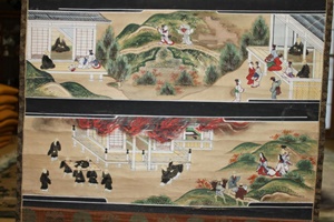 その堂宇が建てられた山ふもとに、今、願慶寺と東西本願寺の別院が静かに「蓮如の里」を守っています。私は住職のいる願慶寺に参拝し、住職から吉崎御坊についての熱のこもった説明を聞き、「嫁おどし肉附面」を拝見しました。その後、レストランを兼ねた蓮如上人記念館を訪れ、上人の御文や直筆の六字名号を拝見した後そこで遅い昼食をとり、芦原温泉駅に戻りました。秋の短い北陸の旅でした。 南無阿弥陀仏 三宝寺門徒総代 椎崎武雄 [住職補足] 蓮如上人のご一生は「蓮如上人絵伝」と呼ばれる四幅の掛け軸に表されますが、多くのお寺が保持して報恩講に奉懸される「親鸞聖人御絵伝」と違って、全国的にその数は極めて少なく貴重なものです。またその絵柄には、その寺の縁起と蓮如上人の係りを表すものも含まれることが多く、本ごとに絵柄が違っています。しかし、吉崎御坊でのいくつかのエピソードはどの絵伝でも重要なモチーフとなっています。 ![]() 上記の絵伝は組内のある寺院が所蔵するもので、上が「嫁おどし肉附面」で、下が「腹ごもりの聖教」の場面です。この吉崎での出来事を欠く「蓮如上人絵伝」を私は知りません。 また何年か前、訪ねた愛知県日進市の宗教公園「五色園」でも「嫁おどし肉附面」の場面が大きなコンクリート塑像で作られているのを見ました。 ![]() 「荒唐無稽」との批判があることは知っていますが、史実のみが宗教心を深めるものではないと私は思っています。(三宝寺住職 湯川逸紀) |