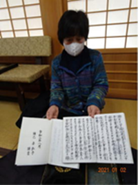 ご主人の一周忌にはもちろんこの御文章を拝読させて頂きました。まことに意義深いことでありました。また、弘子さんは、このお正月には三宝寺本堂の御本尊にも孫さんたちとご一緒にそれをもってご奉告に見えてくださいました。遠くのご先祖からのお念仏のバトンが間違いなく子どもたちに伝わりました。とてもうれしいお正月でした。 南無阿弥陀仏 南無阿弥陀仏 入山三宝寺住職 湯川逸紀