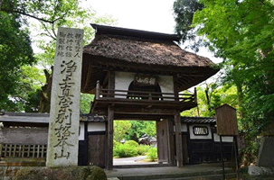 左が総門、境内は広く壮大な本堂が建つ。右が太子堂で本堂東の山中。中の様子は不明。 4.真宗高田派 妙源寺(愛知県岡崎市)