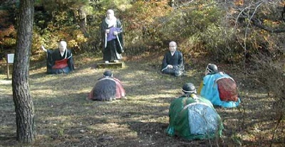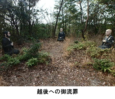 「本願寺新報」などの広告で、二月末、この公演が京都劇場で行われることを知り、その初日午前の部に行ってきました。ネットで取った座席は「A列の17番」大ホール最前列の中央、まさに「かぶりつき」ここが良かったのかどうか分かりませんが、舞台全体を一視野に入れることはできませんが演者の表情、所作はよく見えます。着物の擦れ合う音まで聞こえます。 お話は大正10年に西本願寺の宝庫から発見された「恵信尼消息」をベースにした構成です。この御消息10通は京都で父親鸞聖人を支え、看取った末娘覚信尼に届けられたお手紙で、自らの家族を語ることの無かった親鸞聖人の素顔やお人柄を知るとこができる一級の資料と評価されるものです。ここには越後で所領を守りながら子どもや孫の面倒をみて暮らす老齢の母恵信尼の日常も書かれています。 この演劇のチラシには「弱き者、貧しき者をこそ救わんと 道を照らした親鸞聖人とその妻恵信尼の、慈しみの絆の物語」と宣伝していました。内容はこれに違わぬ展開で、二幕13場、幕間の休憩を除けば一時間半、まことに充実した時間でした。 第一幕第一場で、「親鸞聖人正明伝」にある「赤山明神で比叡山延暦寺の堂僧範宴(後の親鸞聖人)との若い女性とのであい」(女性が比叡山が女人禁制であることの異議申し立て)を連想させる幕開けで、この女性がお若い恵信尼さまであると設定されていることは驚きでした。 第二幕第二場では、京都に戻った親鸞の元に一人の武士が訪ねてきて、戦から逃げる途中、要らぬ殺生をしてしまった事を悔いて死を覚悟します。親鸞は彼に共に念仏を称えながら生きていこう、と手を差し伸べます。そして、戦がどれほどの人の心をむしばむものか、戦はしてはならぬこと、と恵信尼と確かめ合います。 またこの場では恵信尼が聖人、覚信尼と離れて越後に居を移す決断の理由を越後の所領の管理を任せていた長女「小黒の女房」が病を得て、その子どもたちの養育にあたらねばならないとされていたのは初めて聞いたお話でした。確かに恵信尼消息には、「小黒の女房」が亡くなっていることが記されていますが、この理由の当否は私には分かりません。 第二幕第三・四幕ではこれまであまり知られていない越後での恵信尼さまの暮らしが描かれているのも興味深いところです。 生の公演ですので、写真撮影は御法度、劇中の印象深い場面を何年か前に訪ねた愛知県日進市にある宗教公園「五色園」の塑像写真でご紹介します。